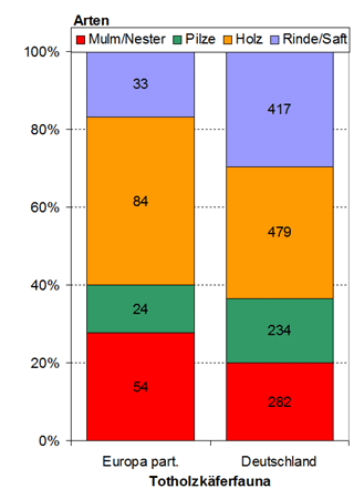 eigentlich je 18 % gefährdete und potentiell gefährdete Totholzkäferarten.