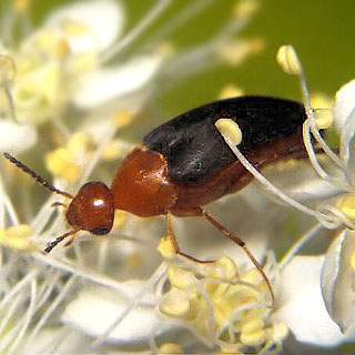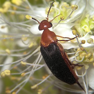 die gleichfalls einen roten Körper mit schwarzen Flügeldecken