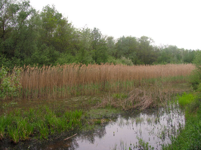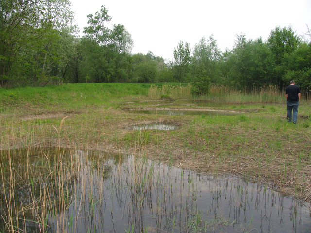 Derzeit ist auch in den Tongruben der Wasserstand recht niedrig, so dass höher gelegene Bereiche trocken gefallen sind. Die Vegetation ist bedingt durch den langen Winter auch hier "noch zurück".