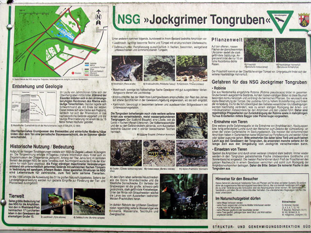 Jockgrim und seine bekannten Tongruben Im 19. und Anfang des 20. Jahrhundert war Jockgrim Standort der Falzziegelwerke Carl Ludowici, dem europäischen Marktführer auf diesem Gebiet. Dementsprechend großflächig sind die alten Tongruben in Jockgrim, die heute allerdings zum größten Teil wiederbewaldet sind. In einigen Bereichen wurden Pflegeeingriffe durchgeführt, Entbuschungen vorgenommen und im Tongrund kleinere und größere Gewässer angelegt. Der Wasserstand ist zur Zeit recht niedrig, so dass in allen Bereichen Gewässer und Landlebensräume untersucht werden können, um Aussagen zur Effizienz der Naturschutzmnaßnahmen ableiten zu können.