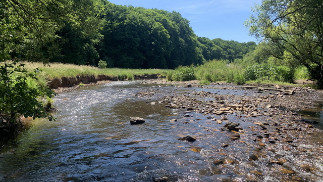 Abb. 3: Die Nahe bei Idar-Oberstein: Fundort seltenster Fließgewässer- und Uferbewohner wie Esolus pygmaeus, Hydraena subimpressa, Ochthebius metallescens, Carpelimus gusarovi, Apimela macella und Stenelmis canaliculata (J. Köhler, 18.07.2020).