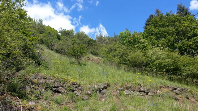 Abb. 5: Blick von Martinstein im Nahetal auf die Trockenrasen des Flachsbergs (J. Köhler, 31.05.2021).