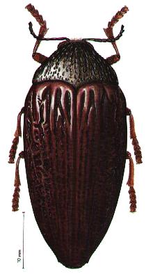 Rechts zu sehen: Stenocera hildebrandti Harold, 1876, benannt nach Hildebrandts Sohn Johann Maria Eduard Theodor (1847-1881), der als Forschungsreisender in Afrika unterwegs war und in Sansibar an Gelbfieber verstarb. Zeichnung aus: Holm, E. & S. Gussmann (1992): Revision of the Genus Stenocera Eschscholtz of Africa. - Entom. Memoires (Pretoria) 85, 72. |