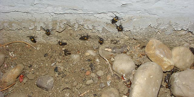 Abb. 3: Hauswand und Beet mit mehreren Ind. von Sitaris