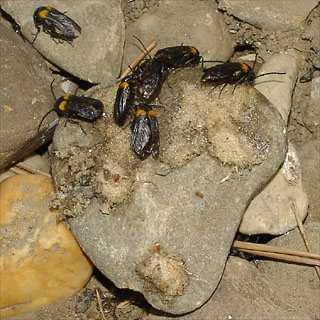 Abb. 4: Mehrere Eigelege mit darauf sitzenden Sitaris. |