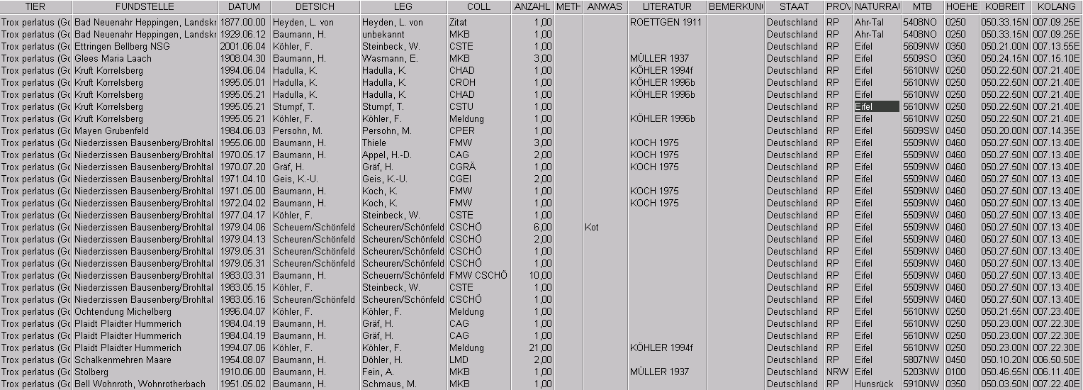 (BAUMANN 2003 ff.) liegen als Datenbank vor (11.000 Datensätze, Abb.