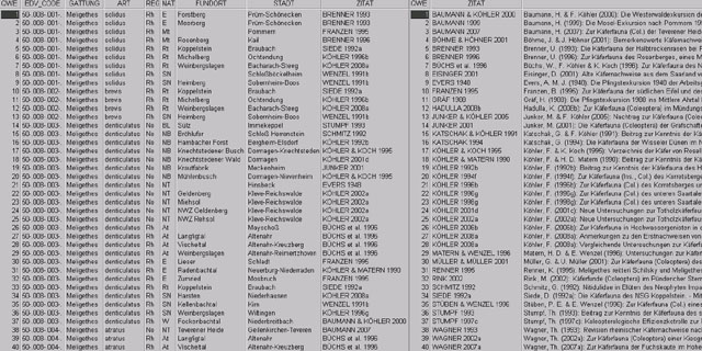 Datenbank, die als Basis für das Verzeichnis der Käfer Deutschlands