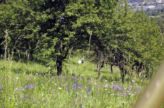 die ortsüblichen Kirschobstwiesen mit Magerrasen Gelegenheit zum ausgiebigen