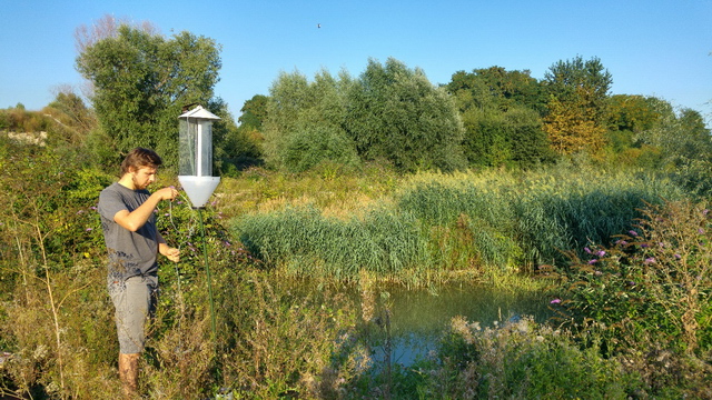 Abb. 6: Aufbau einer Lichtfalle in einer Kiesgrube bei Urmitz-Junkersheck