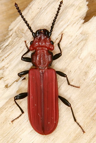 Karl HADULLA konnte mit Cucujus cinnaberianus (Dirk ROHWEDDER leg., Abb. 3) und Neomida haemorrhoidalis gleich zwei Neufunde für das südliche Rheinland melden, zudem gelang der Wiederfund von Xylotrechus rusticus (etliche Individuen) für diese Region. Die Ausbeute wurde durch Funde der Urwaldrelikte Quedius truncicola und Rhopalocerus rondanii abgerundet. Spannend bleibt, welche Arten bei genauerer Bearbeitung der Proben noch zu Tage treten. Zum kulinarischen Ausklang des Exkursionswochenendes hatte schließlich Familie WAGNER / MATHIEU am Samstagabend nach Brohl zum Grillen eingeladen. Diese Gelegenheit ließen sich auch einige „Inaktive“ nicht nehmen, so dass bis spät abends in großer Runde gesellig bei Speis und Trank gefachsimpelt wurde.