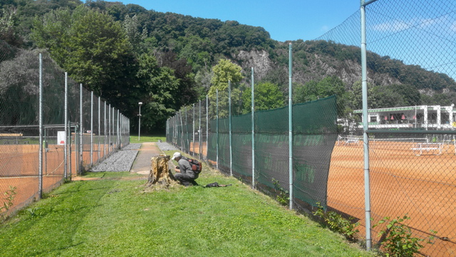 Abb. 4: Dehnübungen am Centercourt Oberwerth – oder doch bei der Anfertigung eines Totholzgesiebes?