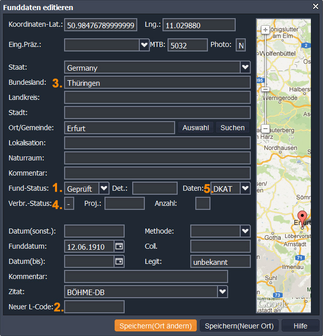 und den korrekten Status wählen. Abschließend "Speichern (Ort