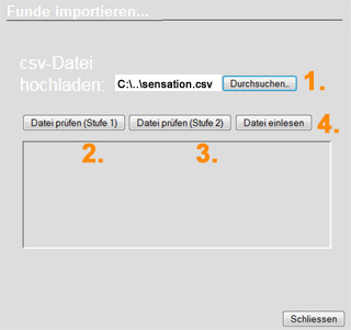 Datei ausgewählt (1) werden und eingelesen (4) werden kann. Beim Import