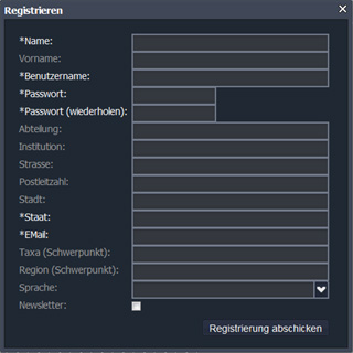Fenster, in dem die mit Sternchen markierten Felder ausgefüllt werden