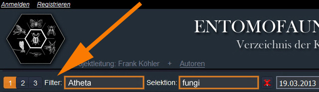kann man nach Lucht-Code, Familien, Gattungen oder Arten suchen. Beispiele: