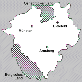 Westfalen (schraffiert = Überschneidung mit anderen Regionen).